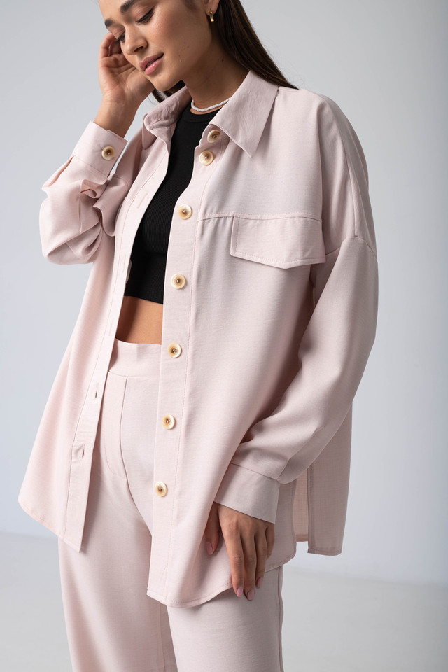 Стильний костюм із льону "427", розміри 44,46,48,50. Молоко